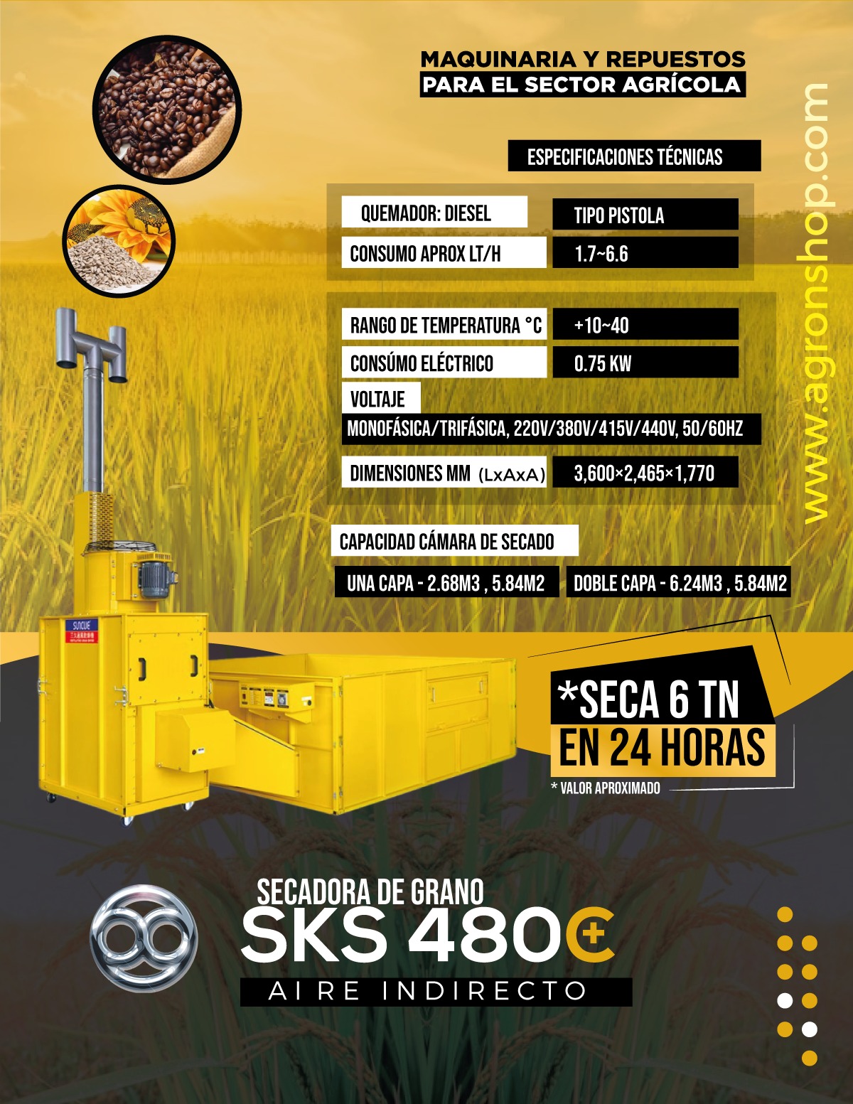Secadoras para diferentes infraestructuras que le permiten llevar su negocio agrícola a la producción total sin dependencia.